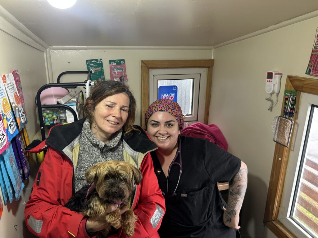 Avant ce départ, nous avons fait notre sortie de territoire Chilien et nous avons pu faire faire une visite médicale à Rustine afin qu’elle puisse rentrer, sans trop de difficulté, en Uruguay. Le cabinet du vétérinaire restera dans nos mémoires. Le plus petit cabinet jamais rencontré, environ 4m².